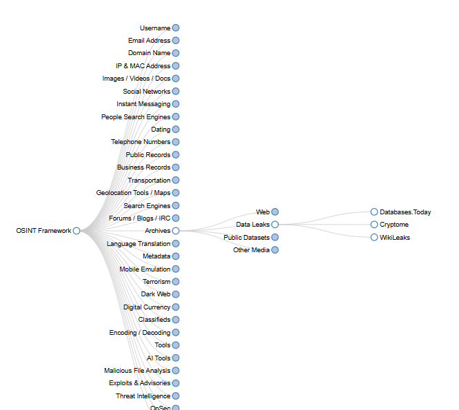 While OSINT FRAMEWORK isn’t a tool to be run on your servers, it’s a very useful way to get valuable information by querying free search engines, resources, and tools publicly available on the Internet. They are focused on bringing the best links to valuable sources of OSINT data.